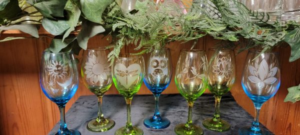 Beautifully designed etched wine goblets. Designed for a nice formal or casual dinner.  If you do not see the design you want, email us we have more designs.